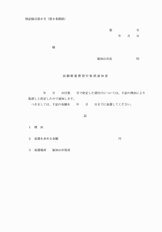 ○福知山市国民健康保険高額療養費貸付基金条例施行規則