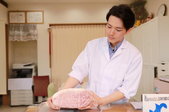 撮影のため、奥から真空パックされたお肉を持ってきてくれた、谷さん