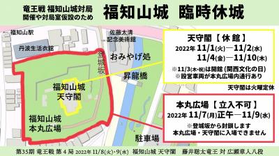 ※竜王戦の前後期間含め、福知山城の天守閣・本丸広場の一般入場はできません。詳細はページ下部にて